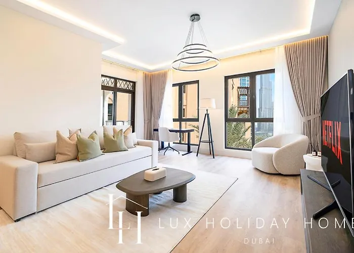 Lux The Burj Khalifa View Downtown Suite المكونة من 1 غرفة نوم تقع على بعد نحو 15 دقائق سيرًا على الأقدام من دبي مول، وتوفّر المسبح الخارجي. تضمن الشقة سلامة الضيوف من خلال خدمة الحماية 24 ساعة، بينما توفّر أيضًا إطلالات على المدينة.